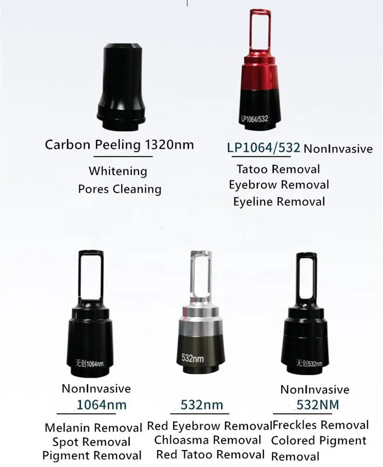 | Applications | Permanent hair reduction | Pigment, melasma, acne, carbon peel |