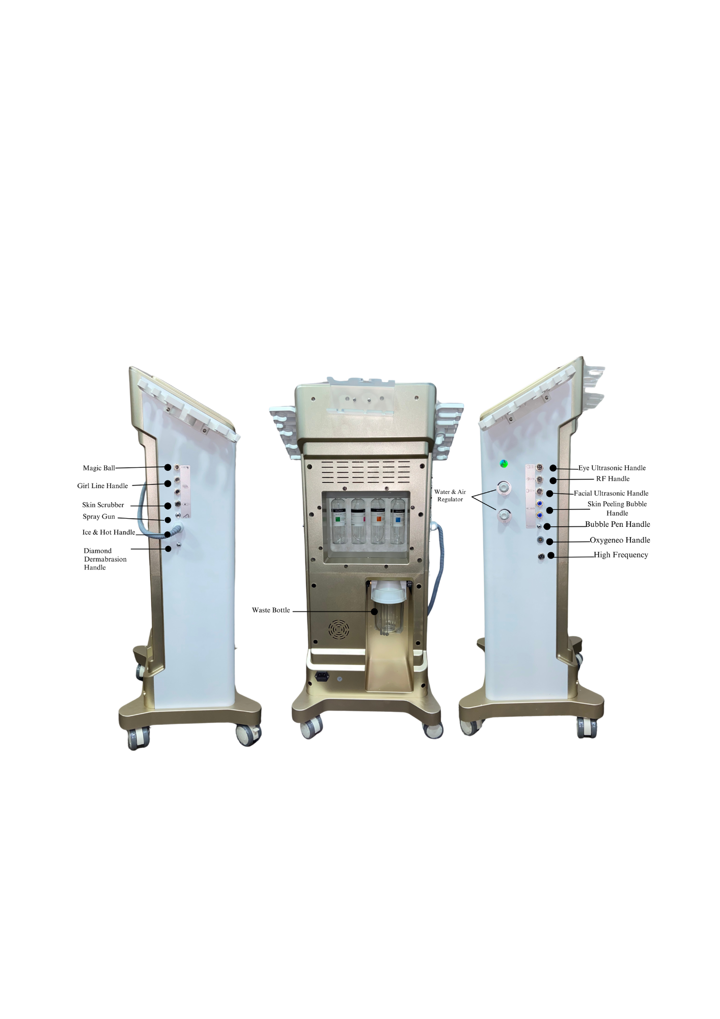 - Oxygenation and Hydration: The Oxygeneo Handle infuses oxygen, rejuvenating and hydrating the skin, while the Bubble Pen Handle ensures deep moisture penetration.