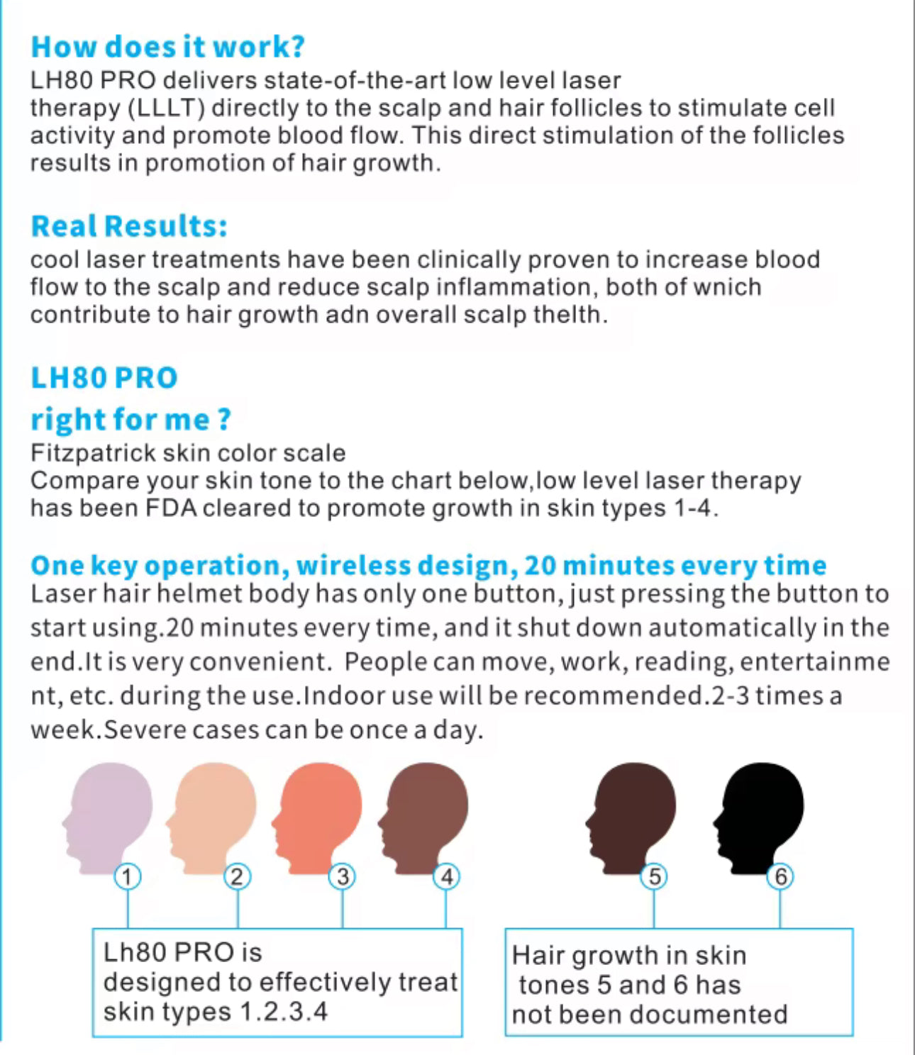The LH80 PRO Laser Hair Helmet is an advanced Low-Level Laser Therapy (LLLT) device designed to combat hair loss and stimulate natural hair regrowth. With 80 patented laser irradiation points, it delivers full scalp coverage comparable to medical-grade devices used in professional clinics.
