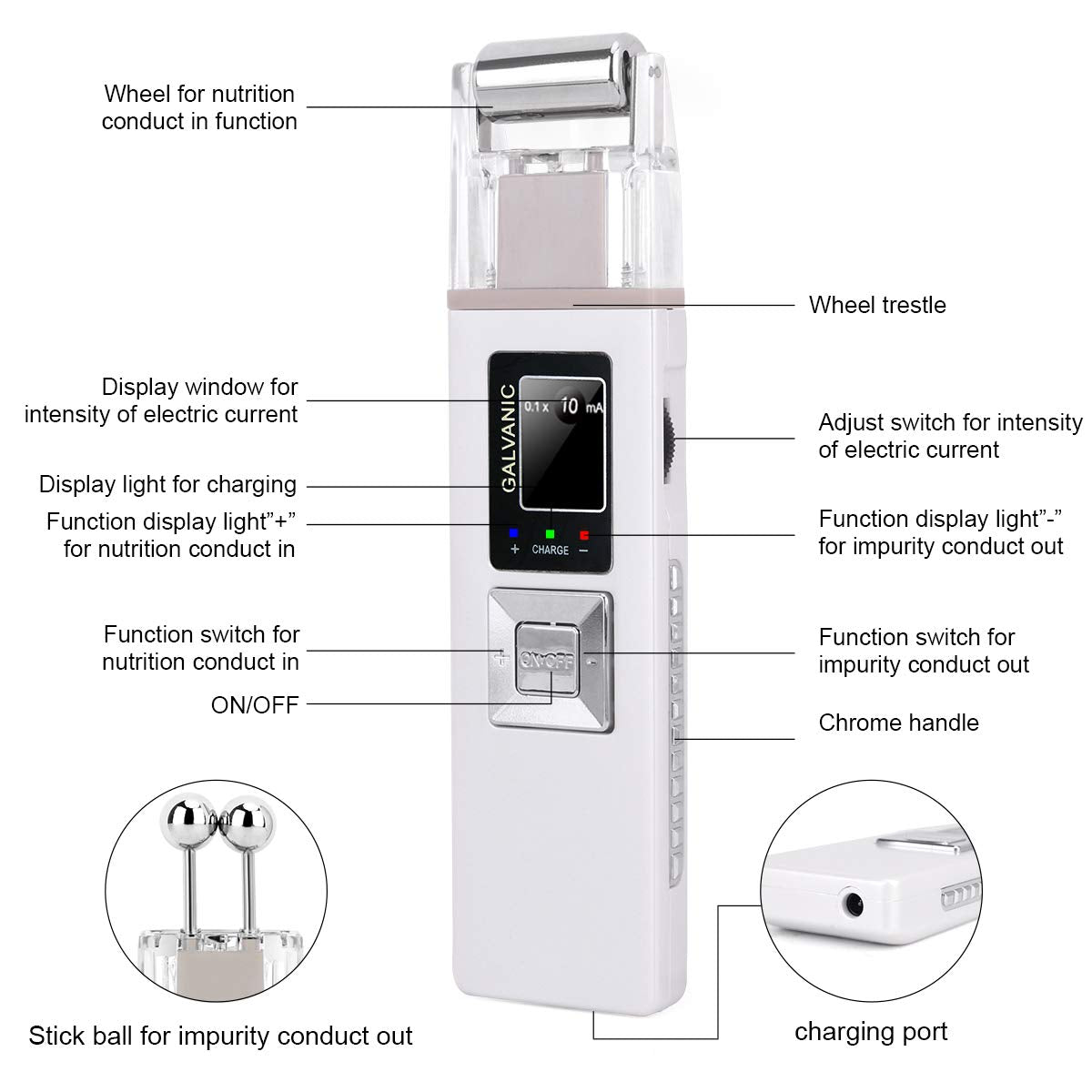 Portable Galvanic Microcurrent Skin Firming Machine, Anti-aging Face Lift Massager Home Use Beauty Salon Device